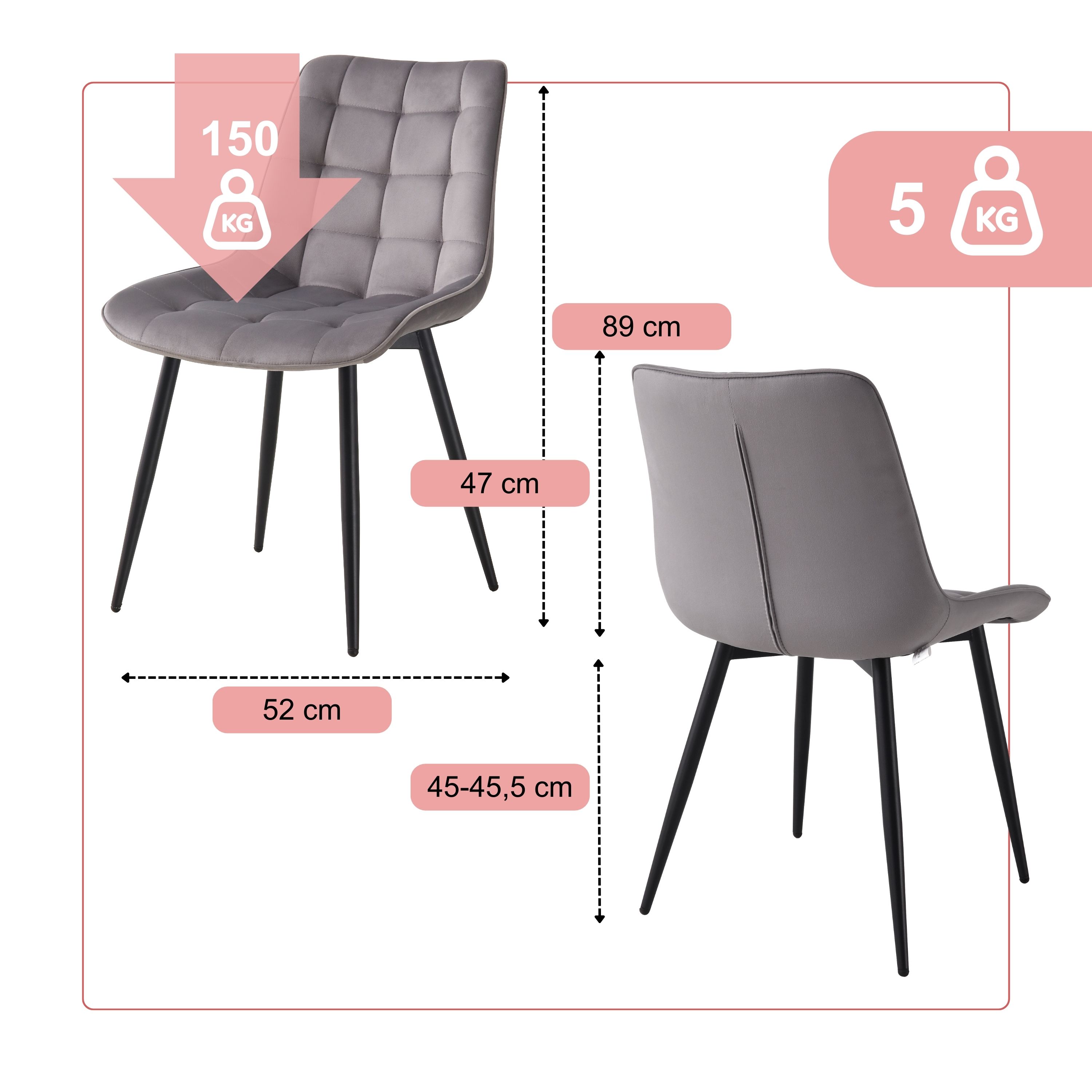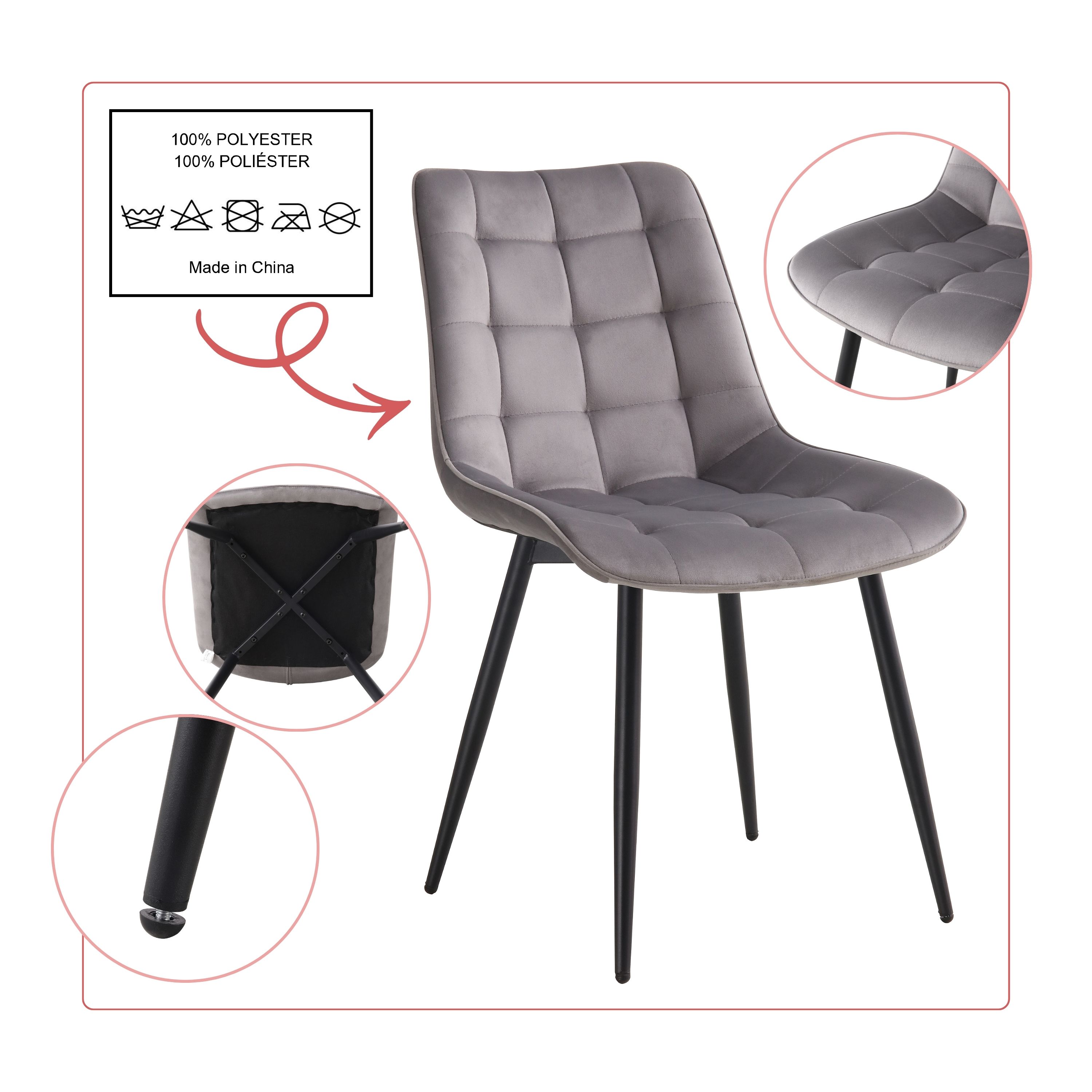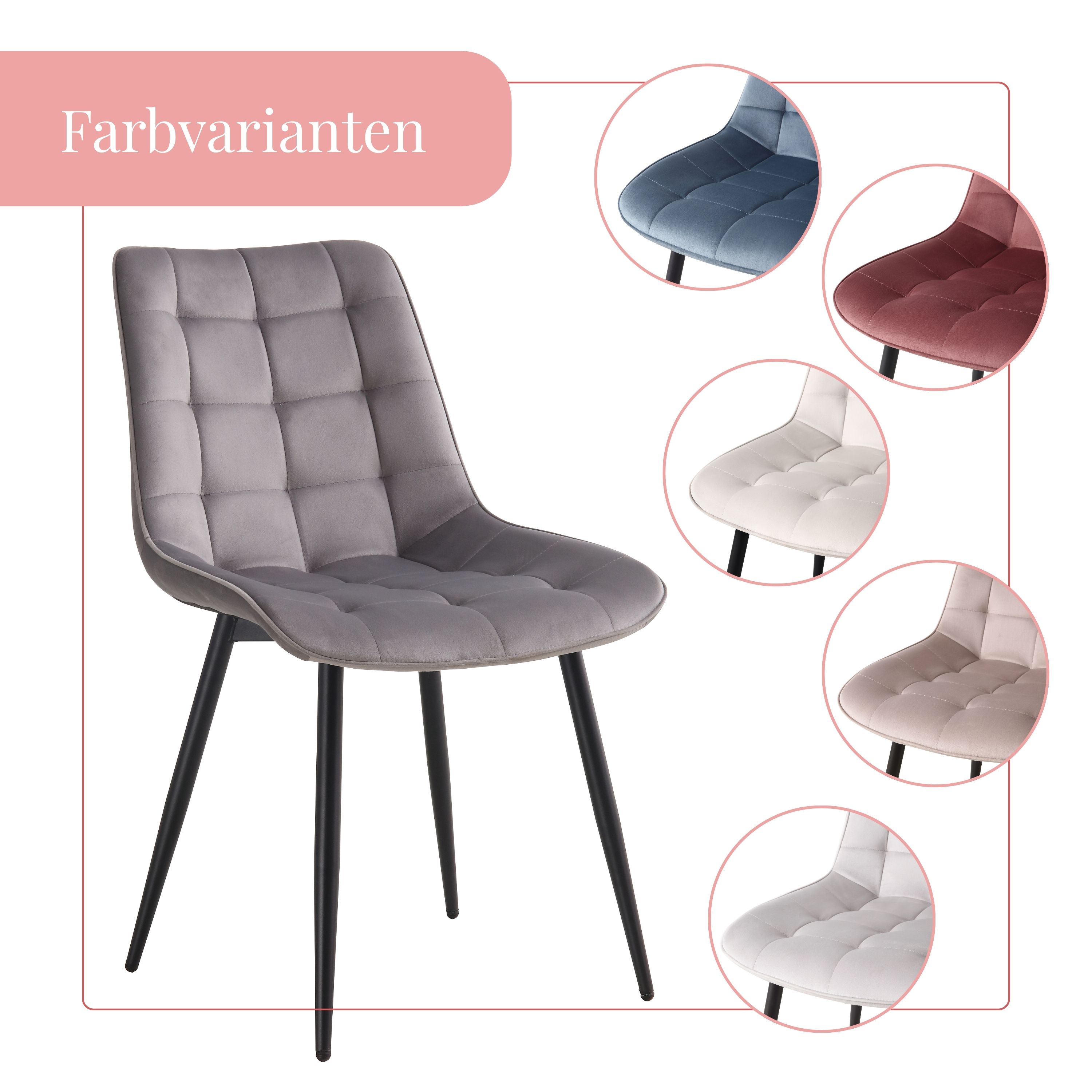 BHS LIVING Esszimmerstuhl, Küchenstuhl, Stuhl für den Wartebereich SERENA Polstersessel mit Samtstoff grau 55x53x88 cm