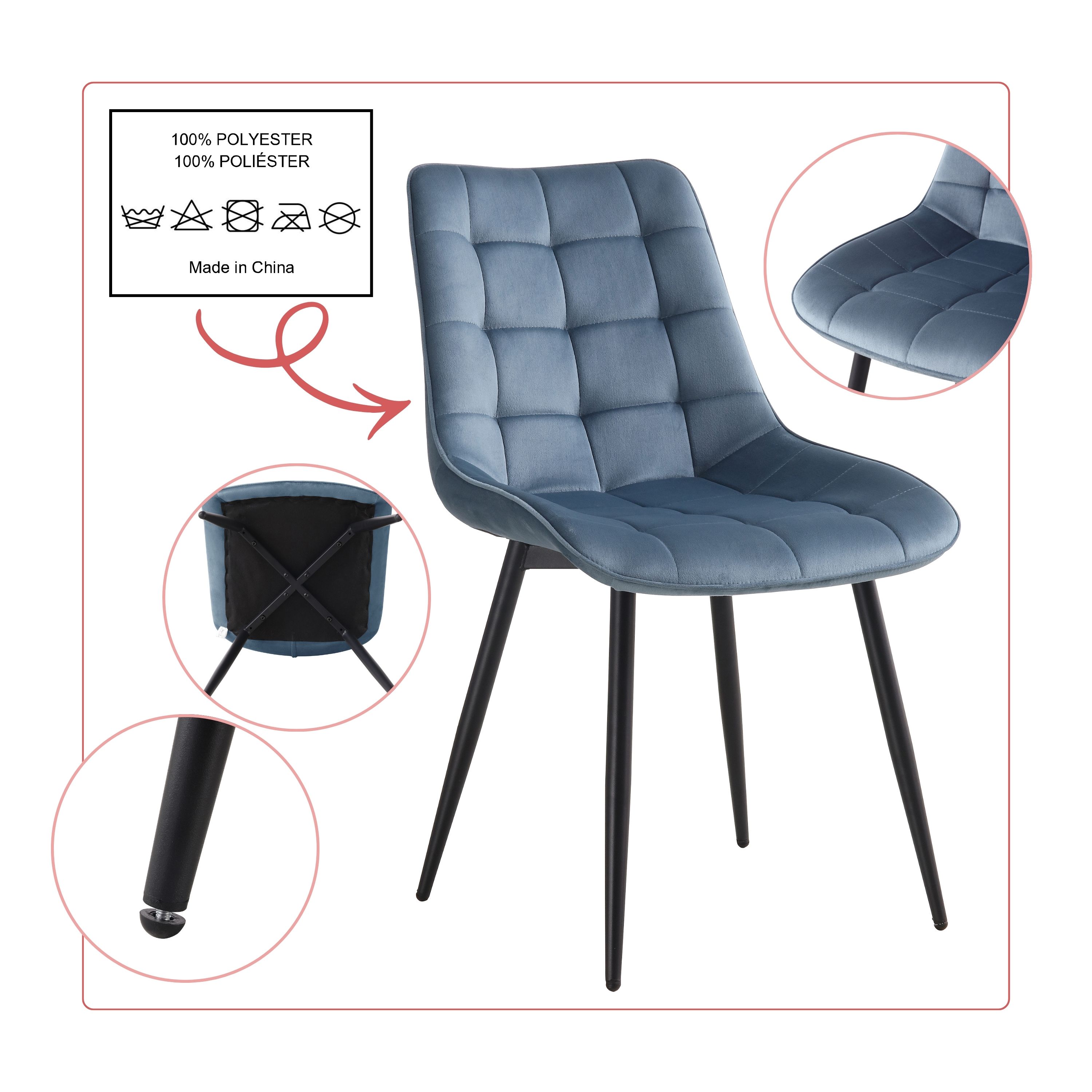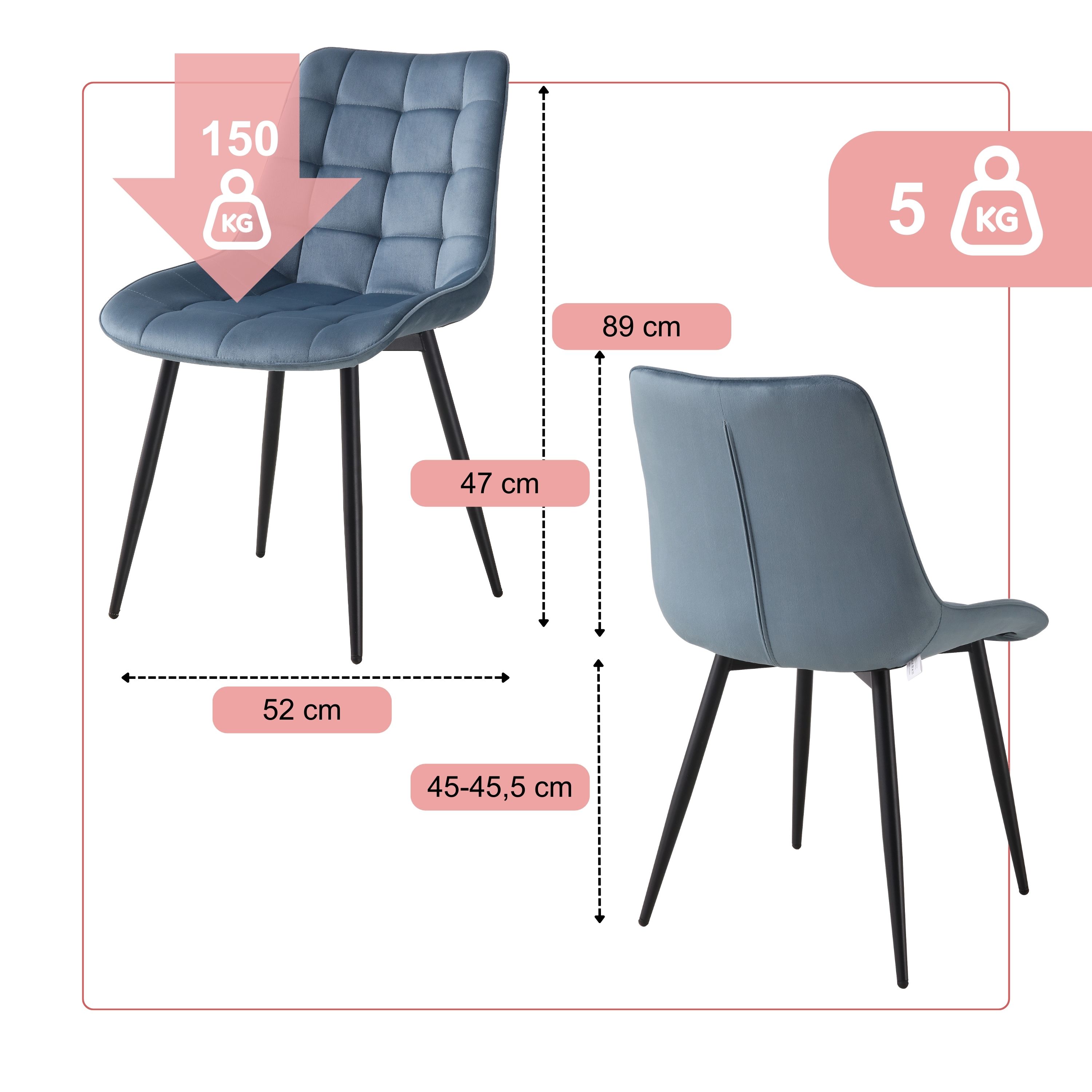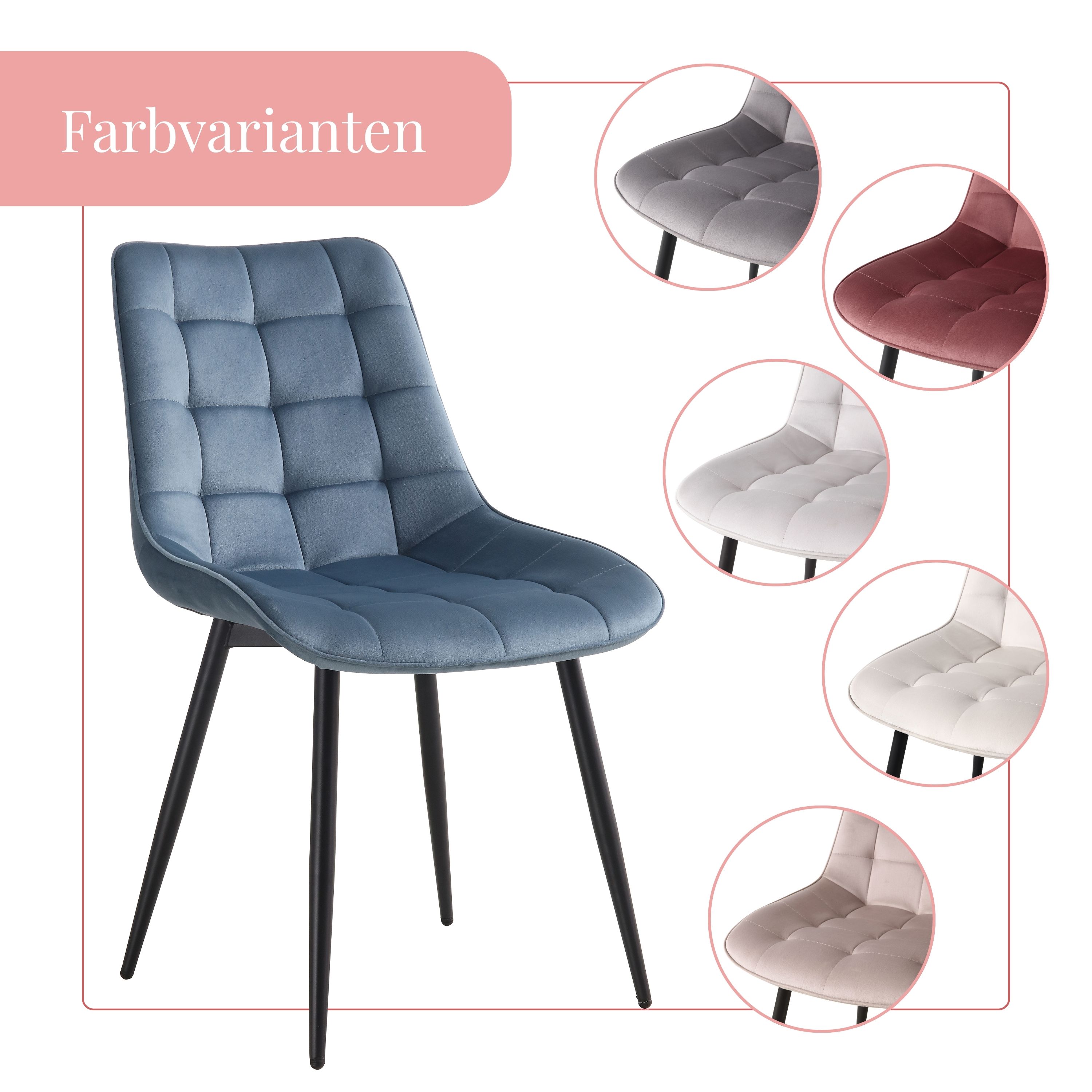 BHS LIVING Esszimmerstuhl, Küchenstuhl, Stuhl für den Wartebereich SERENA Polstersessel mit Samtstoff petrol 55x53x88 cm