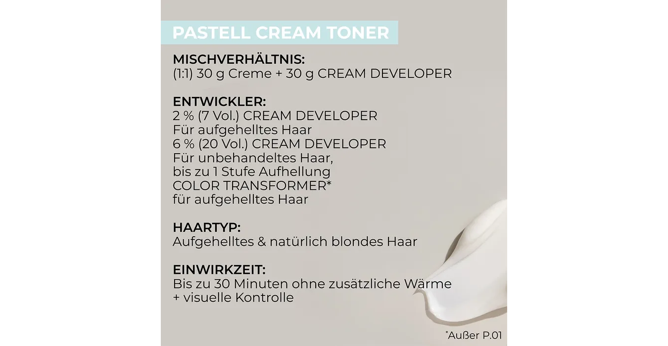 Die Indola Blonde Expert Pastel Serie wurde speziell entwickelt, um blondiertes Haar gezielt zu veredeln und individuelle Blondnuancen zu perfektionieren. Diese professionellen Tönungsfarben ermöglichen eine effektive Neutralisierung unerwünschter warmer Untertöne sowie die Kreation moderner, klarer und brillanter Blondlooks. Die Pastel Nuancen eignen sich ideal für voraufgehelltes oder sehr helles Haar und sorgen für gleichmäßige, lebendige und langanhaltende Farbergebnisse. Durch die ausgewogene Rezeptur wird die Haarstruktur während der Anwendung geschont und gleichzeitig ein gepflegtes, glänzendes Finish erzielt. Dank der cremigen Konsistenz lassen sich die Farben einfach anmischen und präzise auftragen. Die vielseitigen Nuancen der Serie können sowohl einzeln verwendet als auch miteinander kombiniert werden, um individuelle Farbergebnisse zu erzielen. Perfekt geeignet für die Nachbehandlung nach Blondierungen, zur Auffrischung von Blondtönen oder zur gezielten Nuancierung im Salon. Produktvorteile im Überblick: Veredelung und Nuancierung von blondiertem Haar Neutralisierung unerwünschter warmer Untertöne Individuell kombinierbare Nuancen für kreative Ergebnisse Gleichmäßige und brillante Farbergebnisse Cremige Textur für einfaches Auftragen Schonende Formel mit pflegendem Effekt Ideal zur Nachbehandlung nach Blondierungen Professionelle Salonqualität Anwendung: Die gewünschte Pastel Nuance im empfohlenen Mischverhältnis mit einer geeigneten Oxidationscreme anmischen. Auf das handtuchtrockene oder trockene, voraufgehellte Haar auftragen und gleichmäßig verteilen. Je nach gewünschter Intensität etwa 5 bis 20 Minuten einwirken lassen. Anschließend gründlich ausspülen und mit einem passenden Pflegeprodukt nachbehandeln. FAQ: Für wen ist die Indola Blonde Expert Pastel Serie geeignet Die Serie ist ideal für blondiertes oder sehr helles Haar, um gezielte Nuancen und Farbveredelungen zu erzielen. Können die Nuancen miteinander gemischt werden Ja, die Pastel Nuancen können individuell kombiniert werden, um maßgeschneiderte Farbergebnisse zu erreichen. Wie lange hält das Farbergebnis Die Haltbarkeit hängt von Haarstruktur und Pflege ab und verblasst in der Regel gleichmäßig über mehrere Haarwäschen. Ist die Anwendung auch zu Hause möglich Die Anwendung ist grundsätzlich möglich, wird jedoch für optimale Ergebnisse im professionellen Bereich empfohlen. Wird ein Entwickler benötigt Ja, die Pastel Farben werden mit einer passenden Oxidationscreme angewendet.