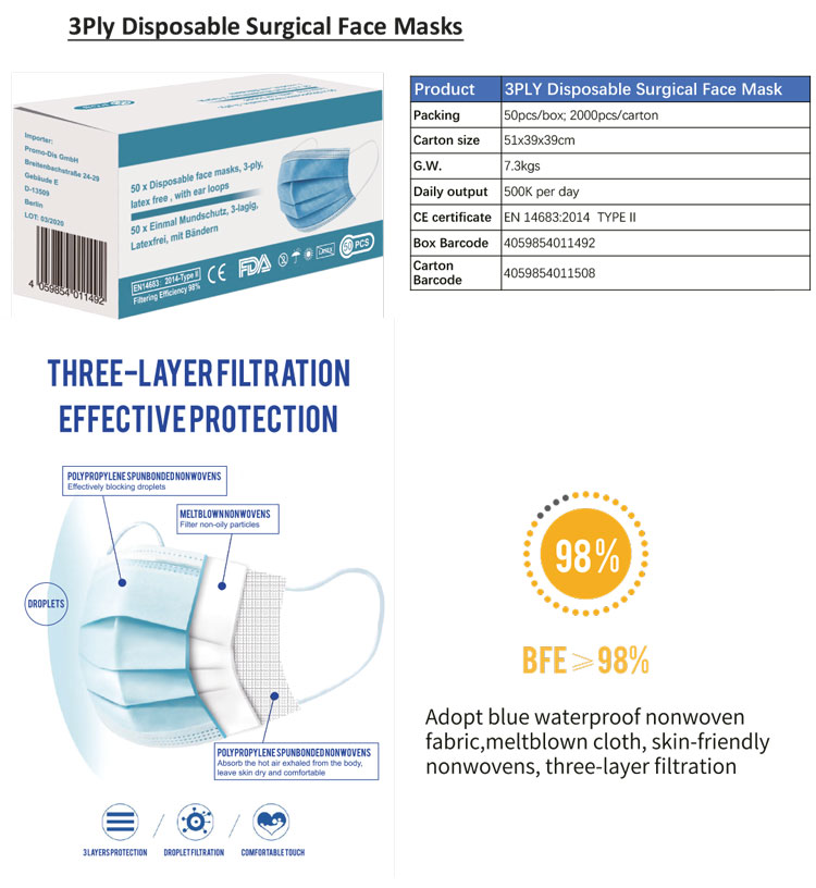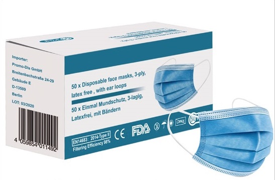 Einweg Mundschutz Maske / Atemschutzmaske - 3-lagig mit Vlies (50 Stück Box)